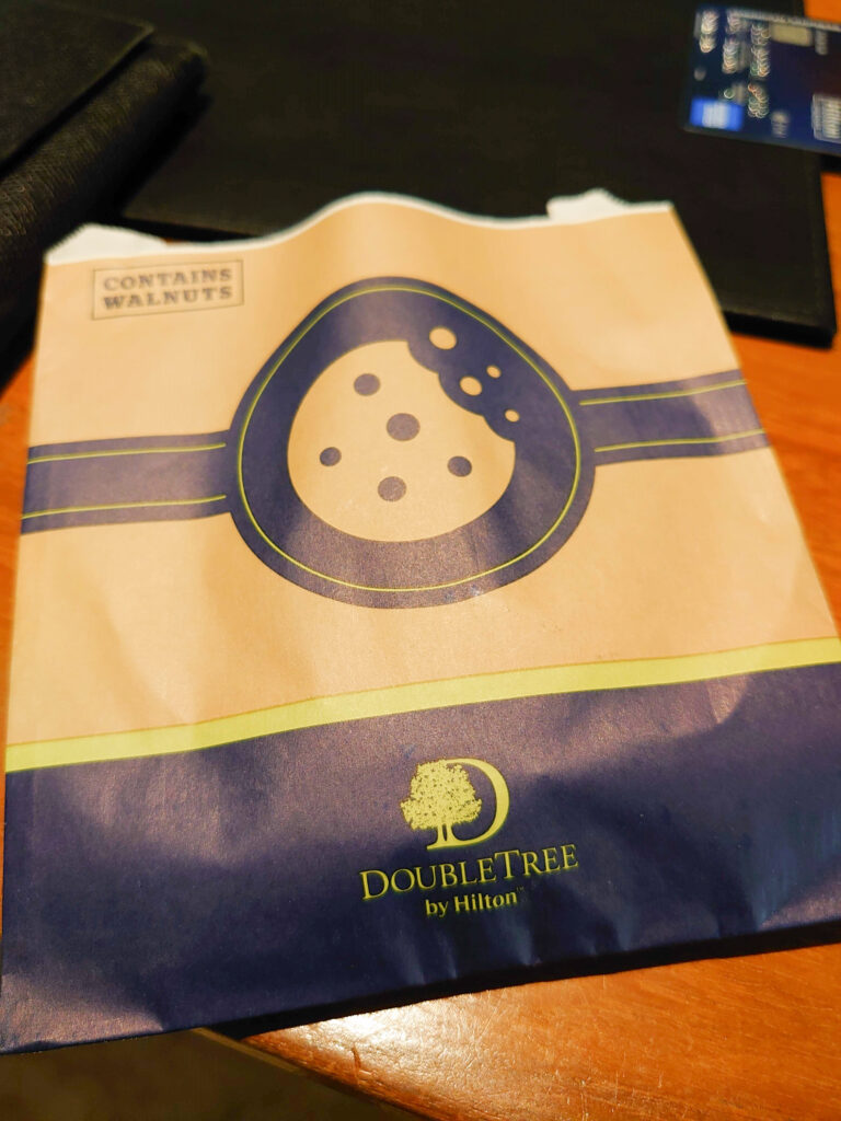 ダブルツリー特製のチョコチップクッキーを頂きました。ホカホカです。