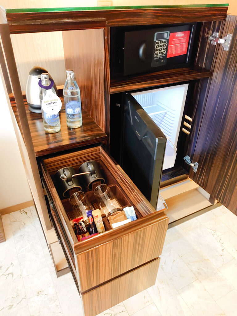 セーフティーボックス、冷蔵庫は空、