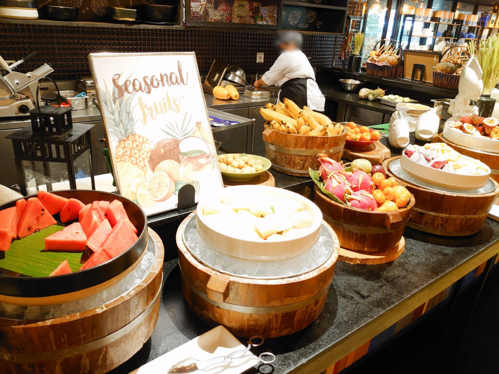 フルーツコーナーはドラゴンフルーツ、ロンガン、スイカ、パイナップル、オレンジ、リンゴ、バナナ等ありました。