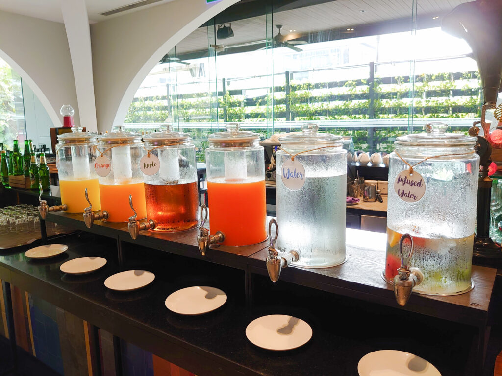 ドリンク類(パイナップル、オレンジ、アップル、野菜ジュース、水、インフューズドウォーター)