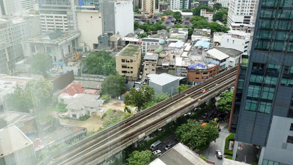 部屋が角部屋なので、建物の南側を走るBTSの線路が見えます。