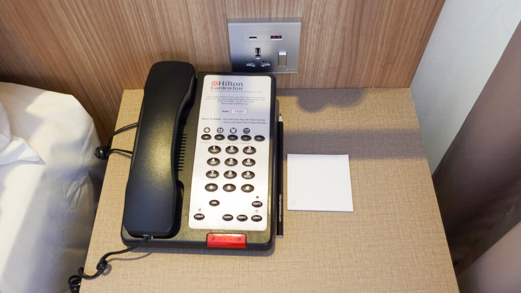 コンセント、電話、ペン、メモ帳