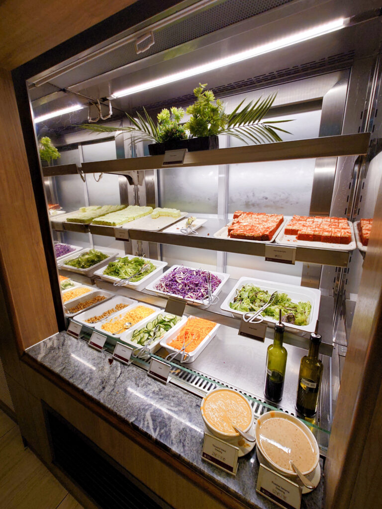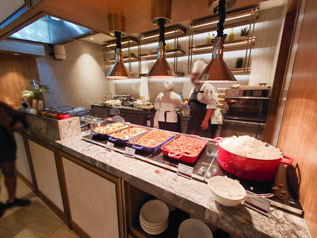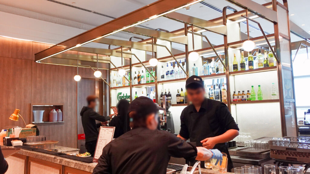 結論から言うと、プラザ・プレミアム・ラウンジは適度な広さで快適、お料理のラインナップは比較的豊富で、その場で注文できるお料理もあり品質は高いです。