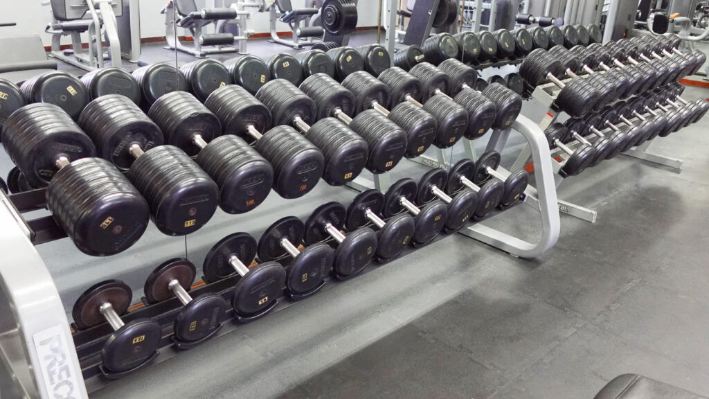 ダンベルは十分に揃っています。可変ベンチ、ケーブルファンクショナルトレーナー、スミスマシン、トレーニングマシンも色々とあるので、筋トレ初心者~上級者まで幅広く対応できると思います。