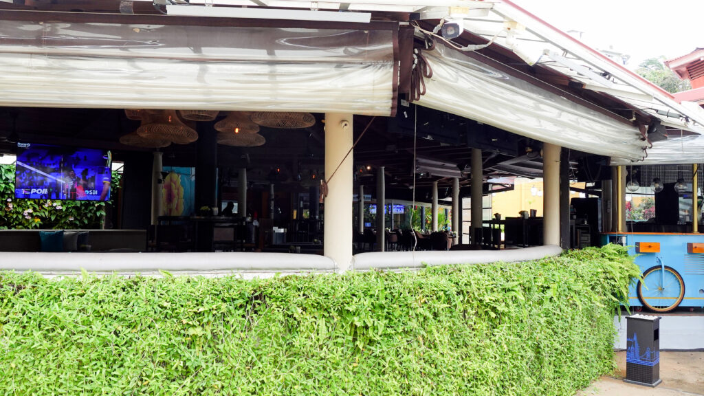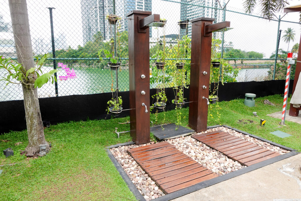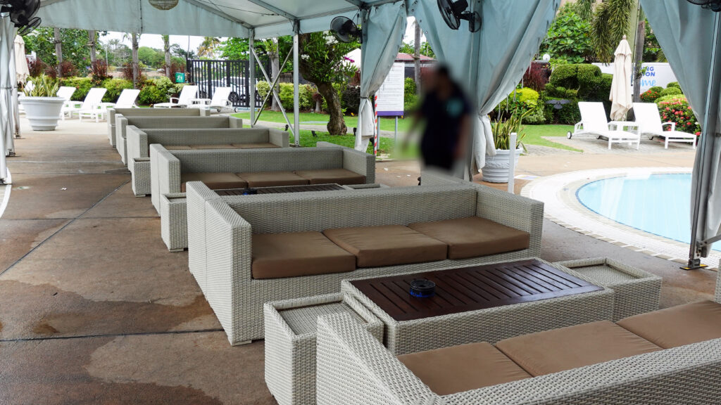 この時はやや薄曇りで時折り晴れ間が見える天気でしたが、プール脇の小さな小屋風のソファー席でゴロゴロしながら読書するのも良さそうだと思いました。