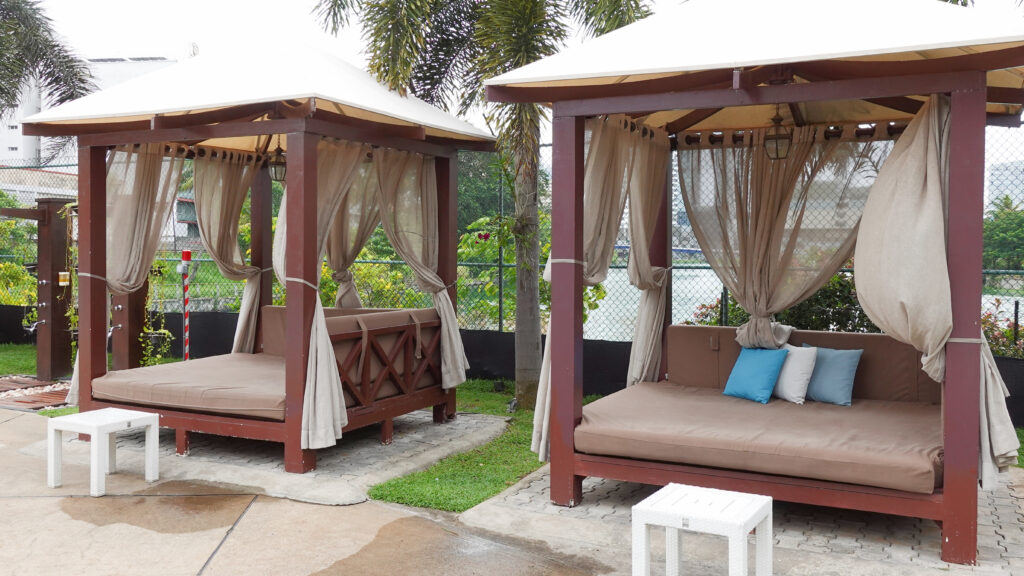 プール周りには色々なタイプのリラックススペースがあります