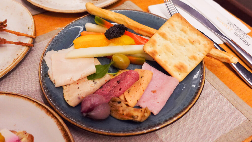 ハム、野菜スティック、クラッカー等