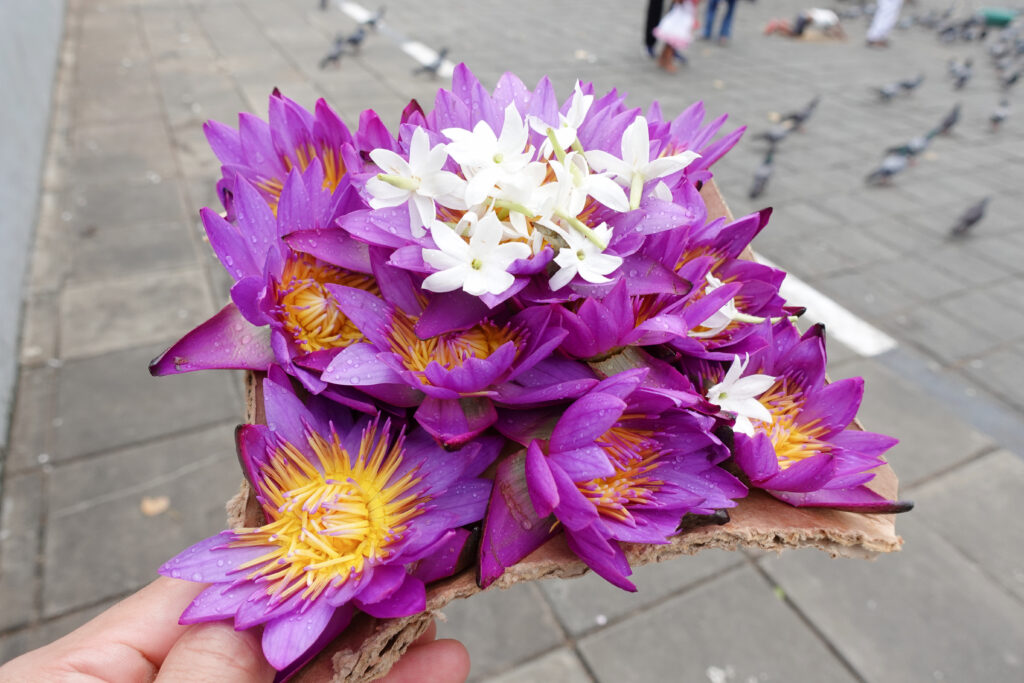 今回はこの紫色のスイレン、白い花のジャスミンを買いました