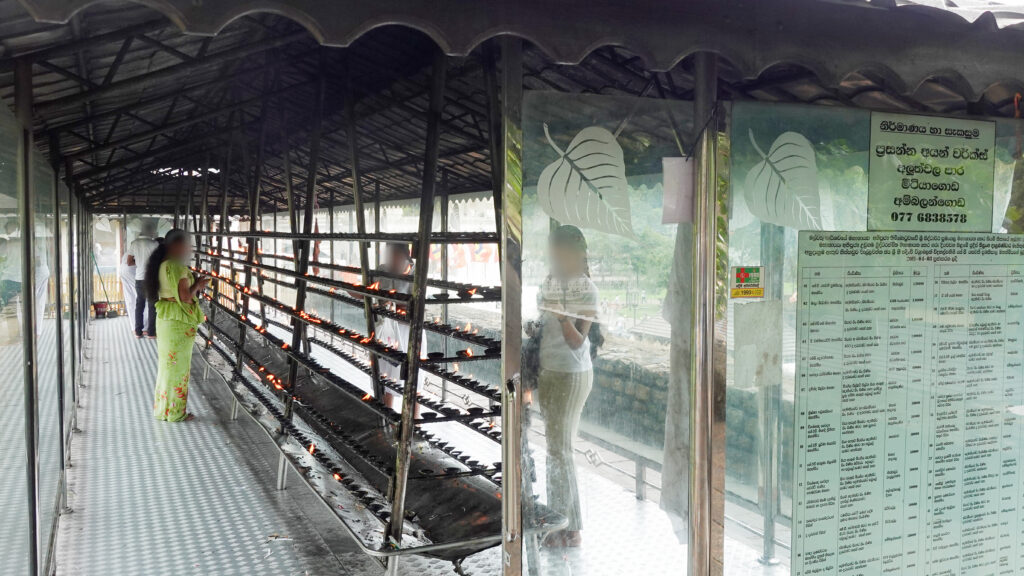参拝者はオイルランプ(ココナッツオイル)を灯して、仏陀に敬意を表したり、功徳を積んだりします。