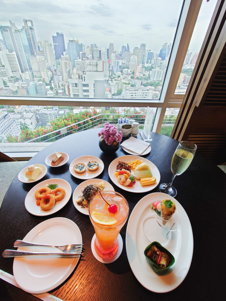 窓の外はバンコクの街並みを見渡せます、とても優雅な気分です