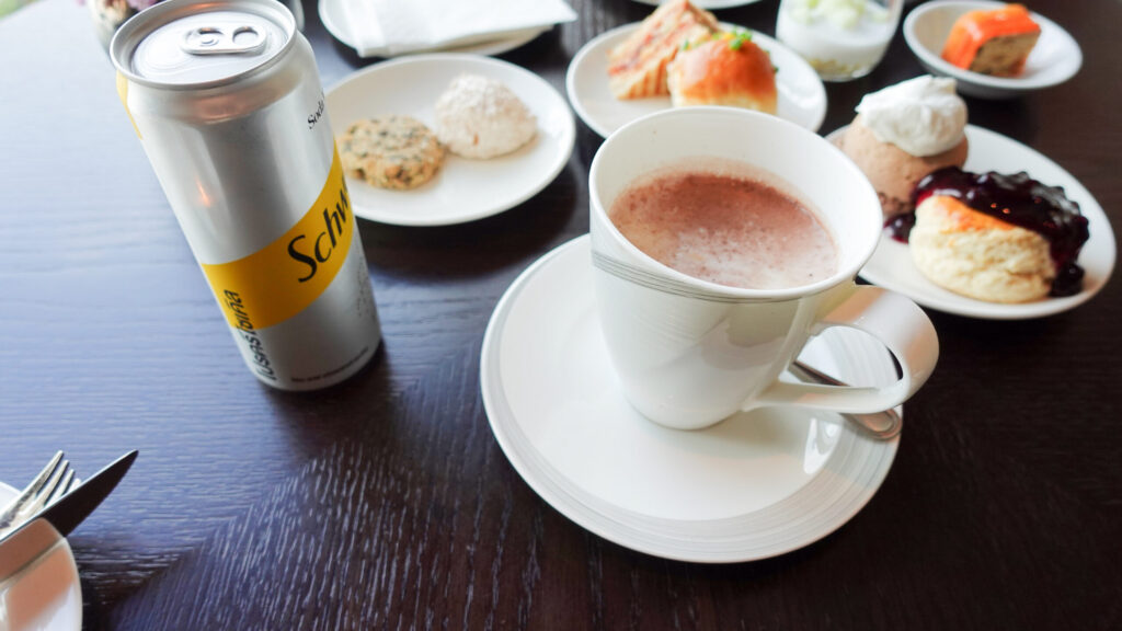 シュウェップスソーダウォーター、ホットカフェラテ