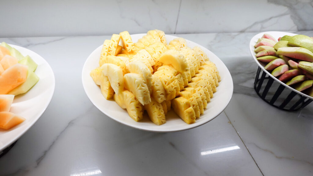 フルーツ盛り合わせ、クッキー、ナッツ、ドライフルーツ類(これらは常時提供されています)