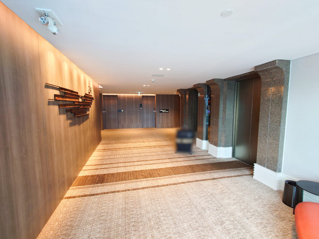 エレベーターホールは絨毯敷きで落ち着いた雰囲気ですね。